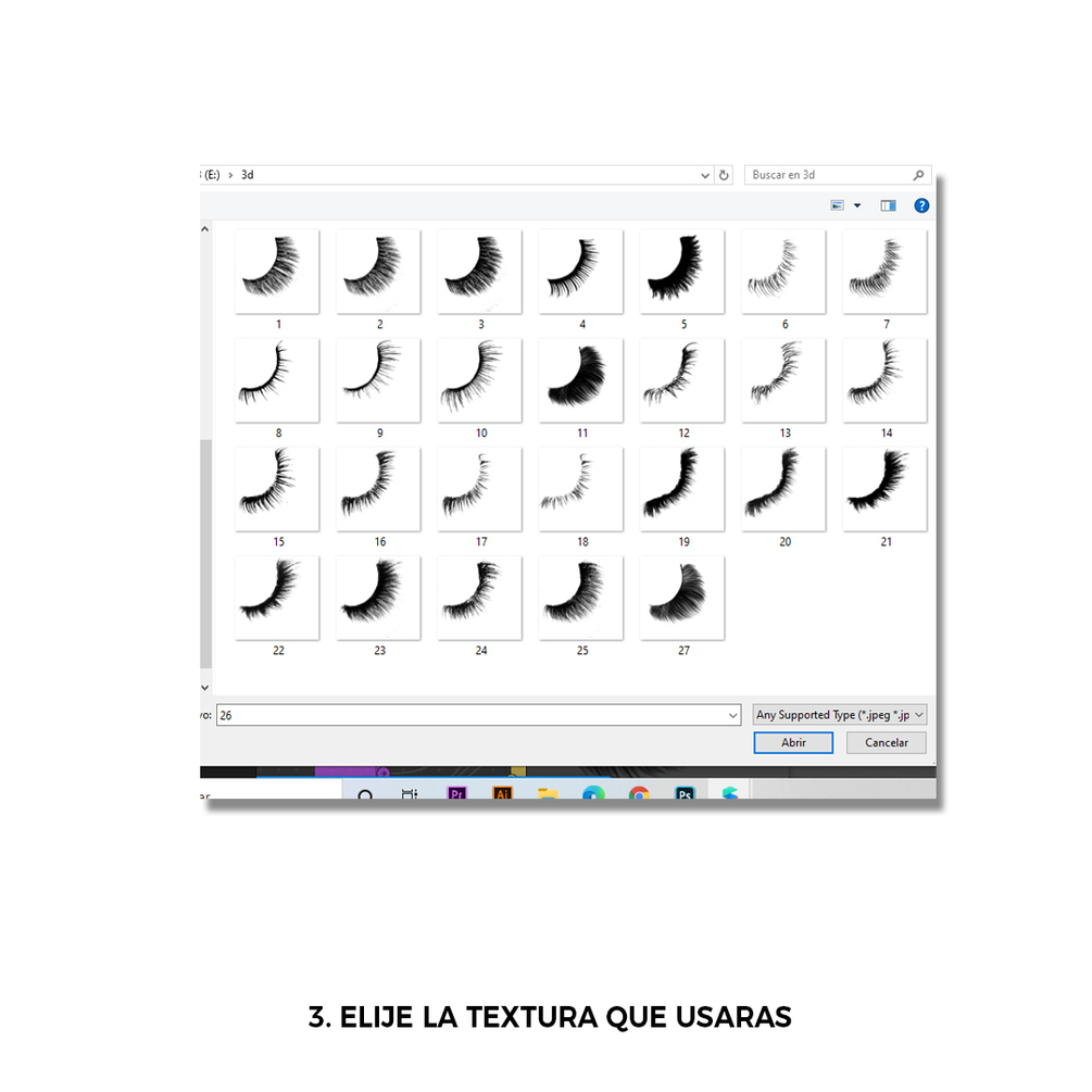 Pack de 25 texturas de eyelashes para pestañas 3d